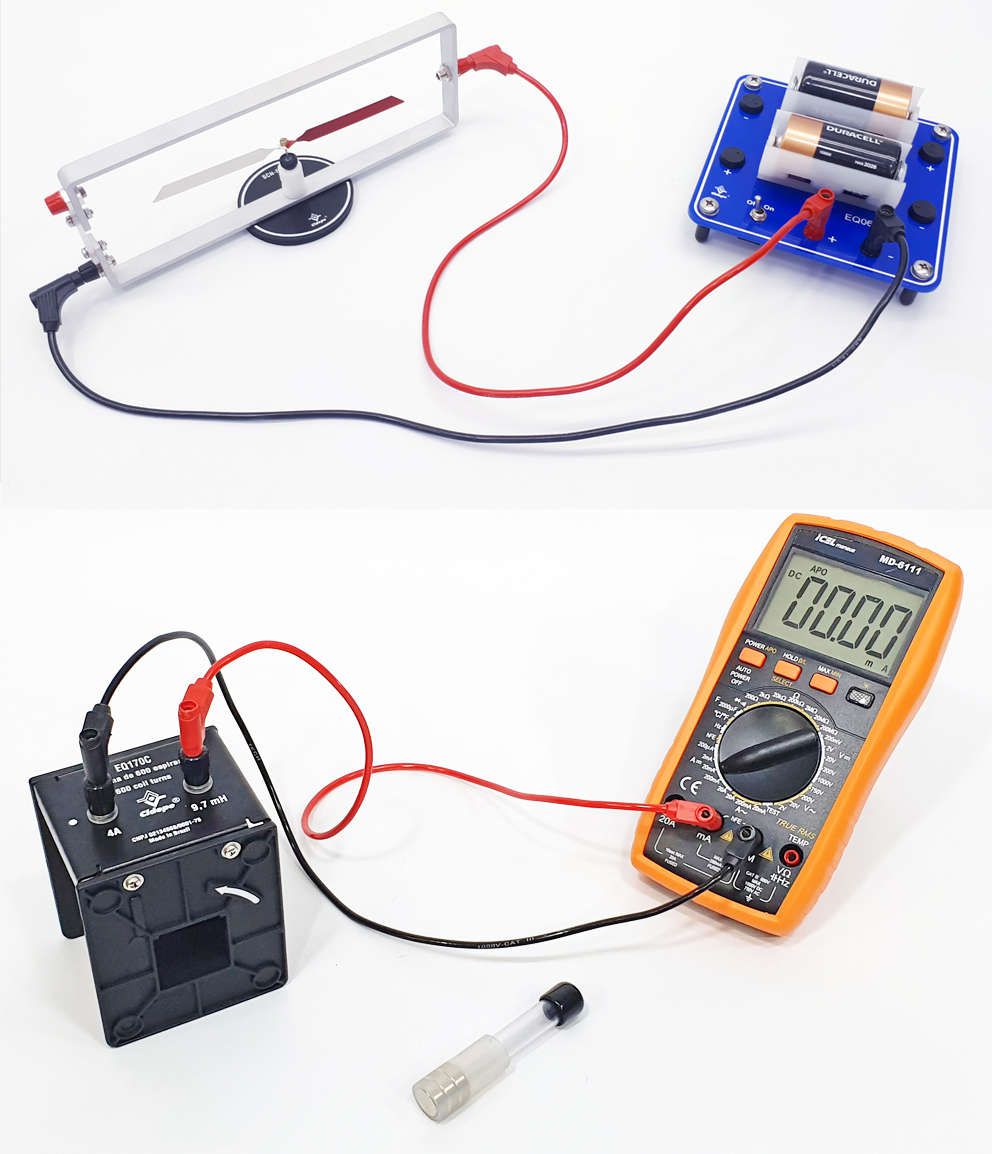 Destinado ao estudo experimental, laboratório de física e realização de experimentos de física sobre: experimento de Oersted, campo magnético gerado por uma corrente elétrica em um condutor, indução magnética, regra da mão direita, regra do nadador de Ampère, eetromagnetismo, fenômenos eletromagnético, indução eletromagnética, interação entre campo magnético, fluxo magnético e corrente elétrica, Lei de Lenz, Lei de Faraday Neumann.etc.
