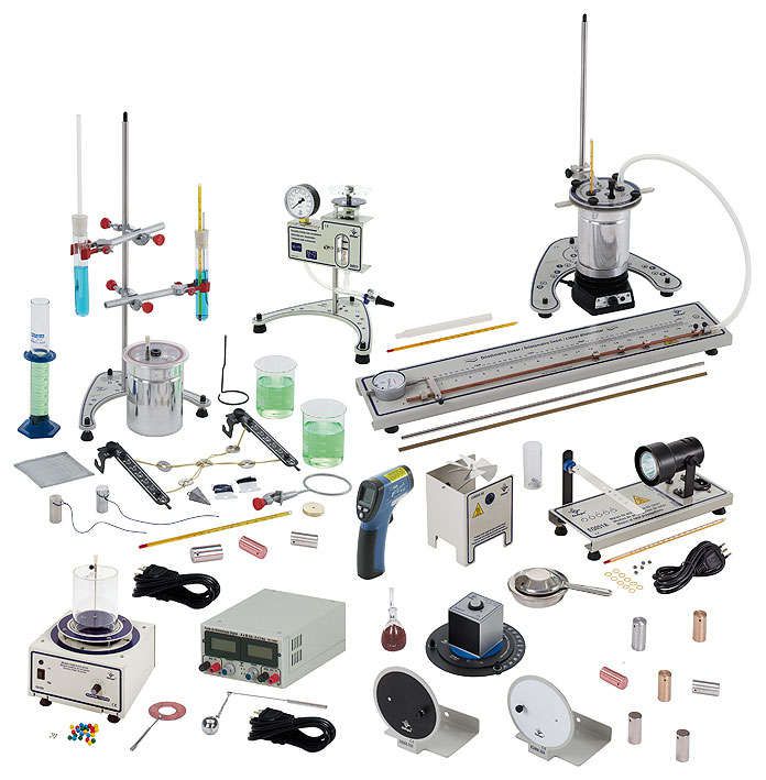 Destinado ao estudo experimental, laboratório de química, laboratório de física, realização de experimentos de química e realização de experimentos de física sobre: densidade, picnometria, termoscópio, calor, temperatura, equilíbrio térmico, equivalente em água de um calorímetro, calor específico, calor latente, meios de propagação do calor, mudança de estado, dilatação linear e volumétrica, transformações energéticas, curva de aquecimento, transformação isotérmica, lei de Boyle-Mariotte, comportamento cinético dos gases, movimento atômico e molecular dos gases, conforto térmico, absorção e emissão de radiação térmica, cubo de Leslie, radiação do corpo negro, etc.