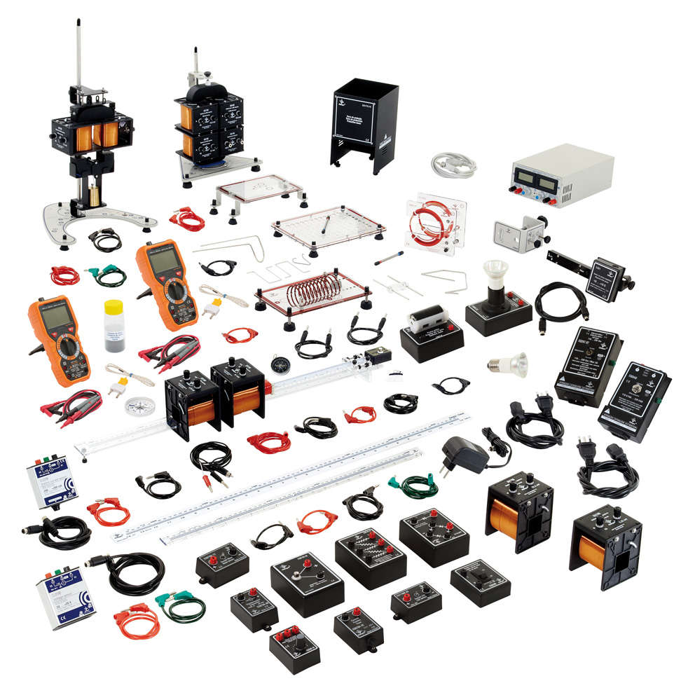 Destinado ao estudo experimental, laboratório de física e realização de experimentos de física sobre: eletromagnetismo, carga elétrica num campo magnético, o experimento de Oersted, a lei de Faraday e Lenz, campos magnéticos estáticos e dinâmicos, correntes de Foucault, a lei de Ampère, a interação entre dois condutores, solenóide, indução eletromagnética, eletrodinâmica AC, correntes e tensões alternadas, fenômenos eletromagnéticos, transformador elevador e abaixador de tensão, funcionamento de transformador elétrico, material ferromagnético e a permeabilidade magnética, rendimento de um transformador, conservação de energia, etc. Obs: Não acompanha a interface.