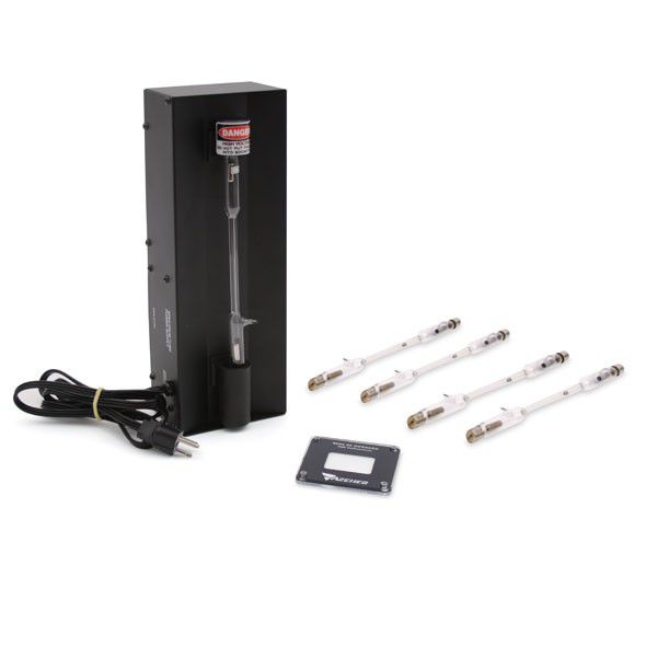 O conjunto é composto por 01 fonte de alimentação de alta-tensão para as lâmpadas espectrais e lâmpadas de Mercúrio, Hélio, Hidrogênio, Neon, Argônio e Criptônio e Rede de Difração de 500 linhas/mm.
