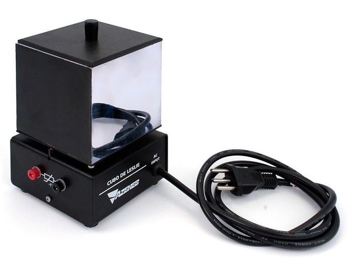 Aliado ao sensor de radiação (vendido separadamente) podemos realizar quantitativamente a medição da emissão de infravermelho das diferente superfícies do cubo bem como comprovar a Lei de Stefan-Boltzman para baixas temperaturas.