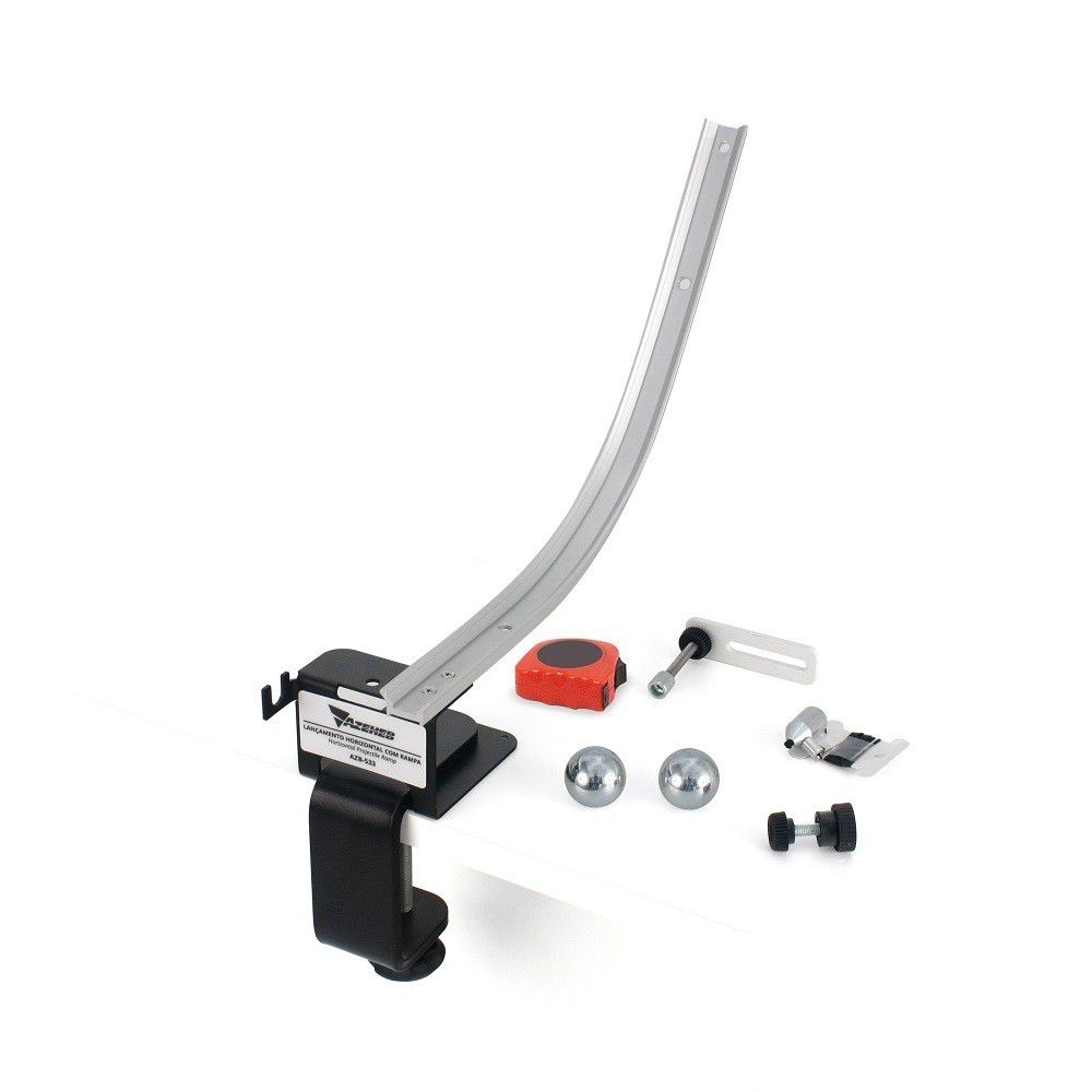 Neste equipamento podemos estudar os lançamentos horizontais realizados à partir de uma rampa. O experimento é realizado soltando uma esfera de uma altura definida para observação do lançamento. O lançamento poderá ser realizado com diferentes velocidades de lançamento. Além do estudo de lançamentos horizontais, podemos estudar colisões frontais e obliquas entre esferas.