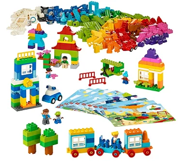 • Conteúdo: - 480 peças LEGO® DUPLO®, incluindo bases para construção, rodas, janelas, portas, flores e seis figuras DUPLO - Cartões com Atividades Introdutórias - 10 cartões de inspiração dupla face com 20 modelos para construção